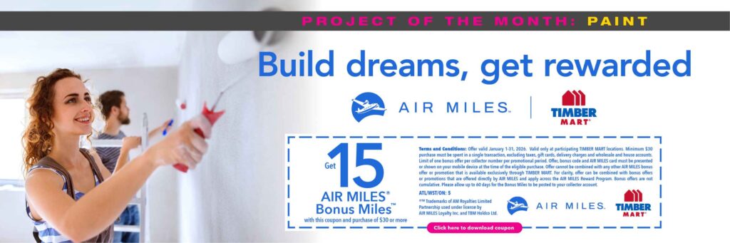 **Valid on retail goods and services paid for at the time of purchase. Exclusions: purchases of gift cards, delivery charges, wholesale, and house account. A limit of 5 eVouchers can be used during a single transaction or quoted project with a maximum of $250 CDN per AIR MILES® Collector Account per day. Splitting a transaction or project into multiple purchases to exceed these maximums is not permitted. No cash back. Minimum purchase requirements apply. Full value of the eVoucher must be used in a single transaction. Sales taxes that may be applicable to the items you purchase with the eVoucher will be calculated on prices before the eVoucher retail value is credited by the Rewards Partner. Unless otherwise state by law, the eVouchers have no expiration date and no maintenance fees.