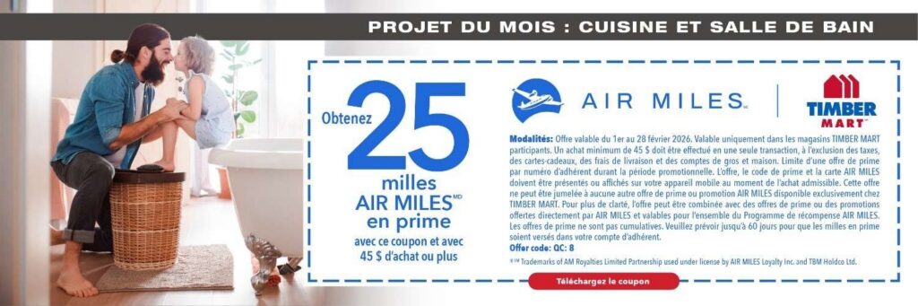 Échangez vos milles contre des bons d’achat électroniques TIMBER MART**
