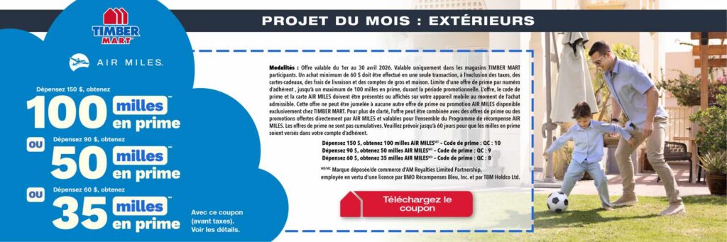 Échangez vos milles AIR MILESMD contre un bon d’achat électronique TIMBER MART